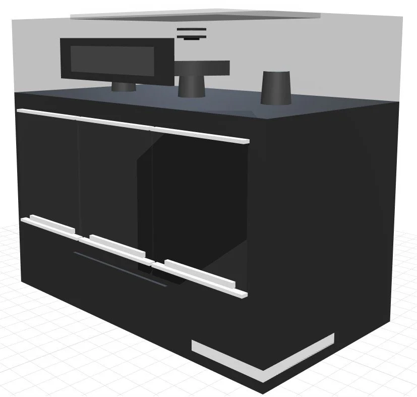 New Specs: 36”H x 36”W x 20”D, drums side-by-side